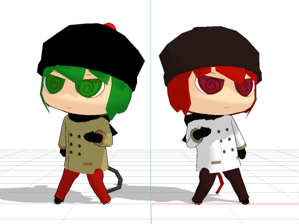 左が最後に動画作った辺りの旧モデル、右がメタセコ戻って作りなおした新モデルです。